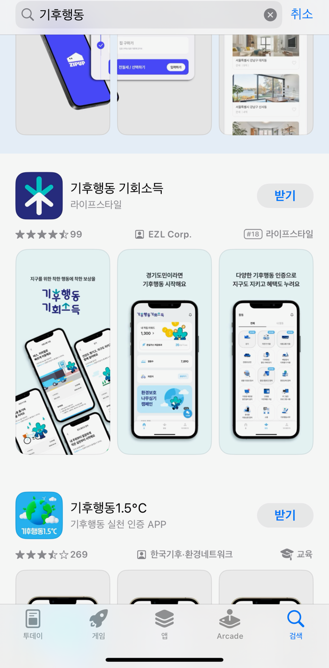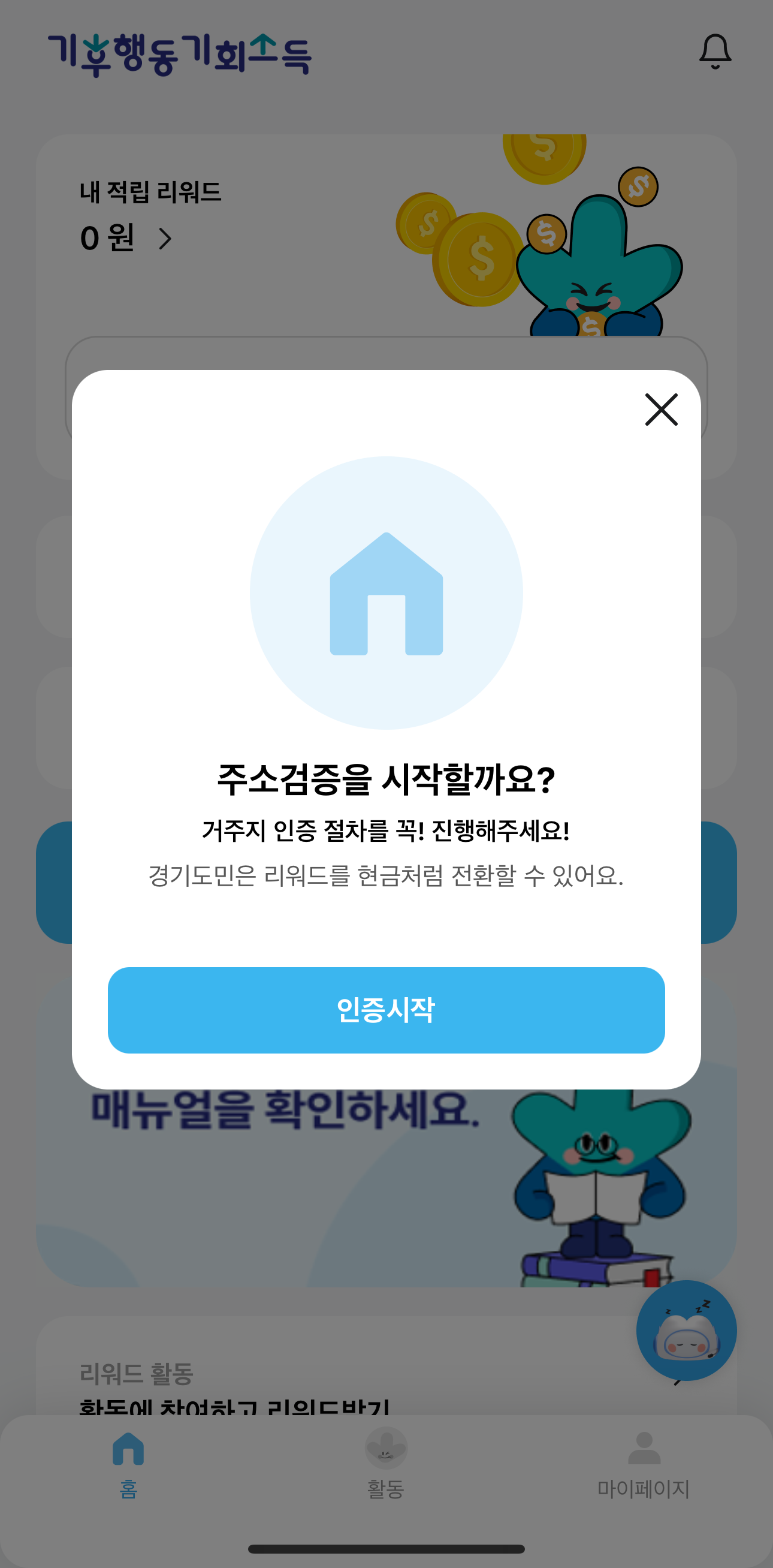 기후행동 기회소득 앱 설치 > 경기도민 인증 후 활동 참여