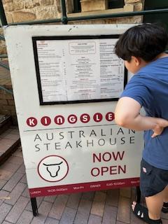 구글지도를 켜고 스테이크집을 찾아서 나섰는데 어떤 곳은 예약을 안해서 안된다고 하고 (자리가 있었는데도요..) 캥거루 스테이크가 없는 곳도 있었는데 한참을 헤맨 끝에 Kingsleys Steak House 라는 곳을 가게 되었습니다.