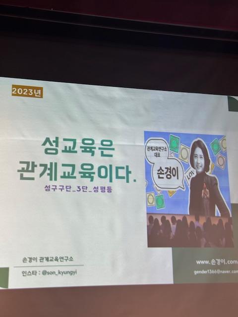 오늘 강연의 제목은 <성교육은 관계교육이다.>