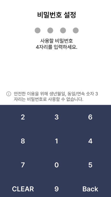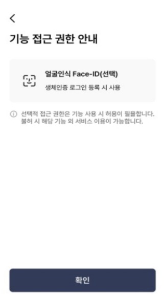 본인 인증이 완료되면 사용할 비밀번호 설정을 합니다. 그리고 생체인증로그인 필요여부에 따라 등록해 주시면 됩니다.