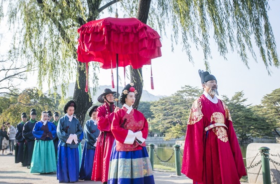 ▲ 경복궁에서는 국왕, 왕비, 왕세자, 세자빈이 *산선시위와 군사의 호위를 받으며 궁궐을 산책하는 모습을 재현한 ‘왕가의 산책’(5.17.~19.)