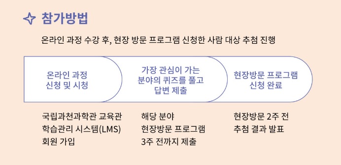 - 사전 온라인 프로그램 수강 후, 현장방문 프로그램 신청 가능