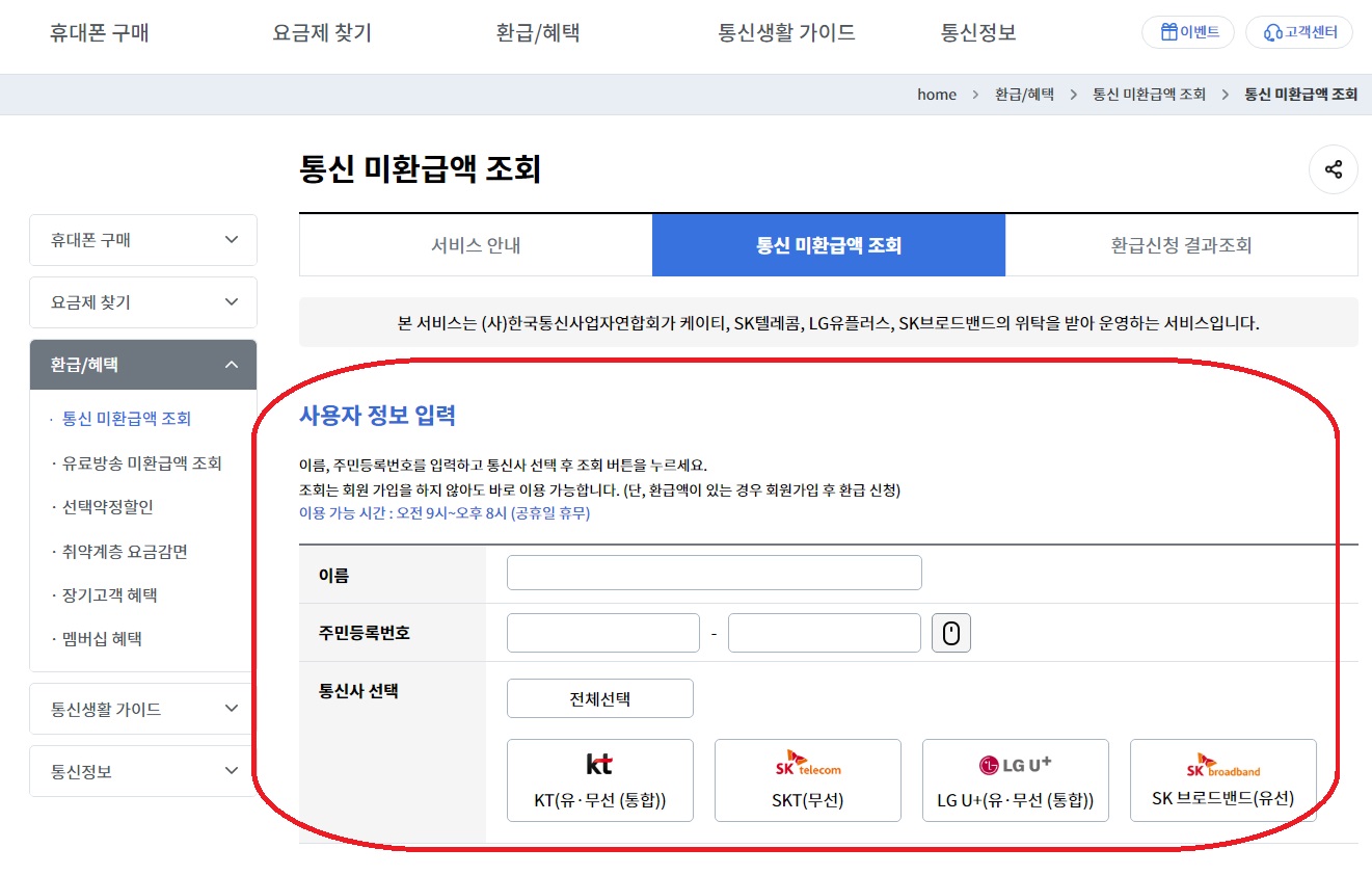 - 통신사 홈페이지: 각 통신사의 공식 홈페이지에서 미환급금 조회 서비스를 제공합니다.