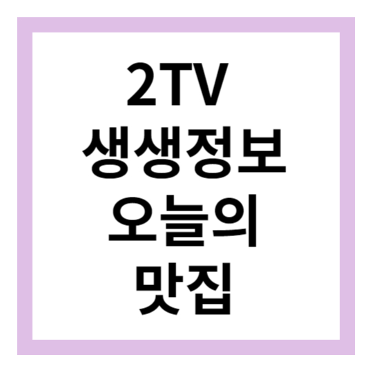 오늘 5월 29일 KBS '2TV 생생정보' 2060회 맛집을 알아봅니다.