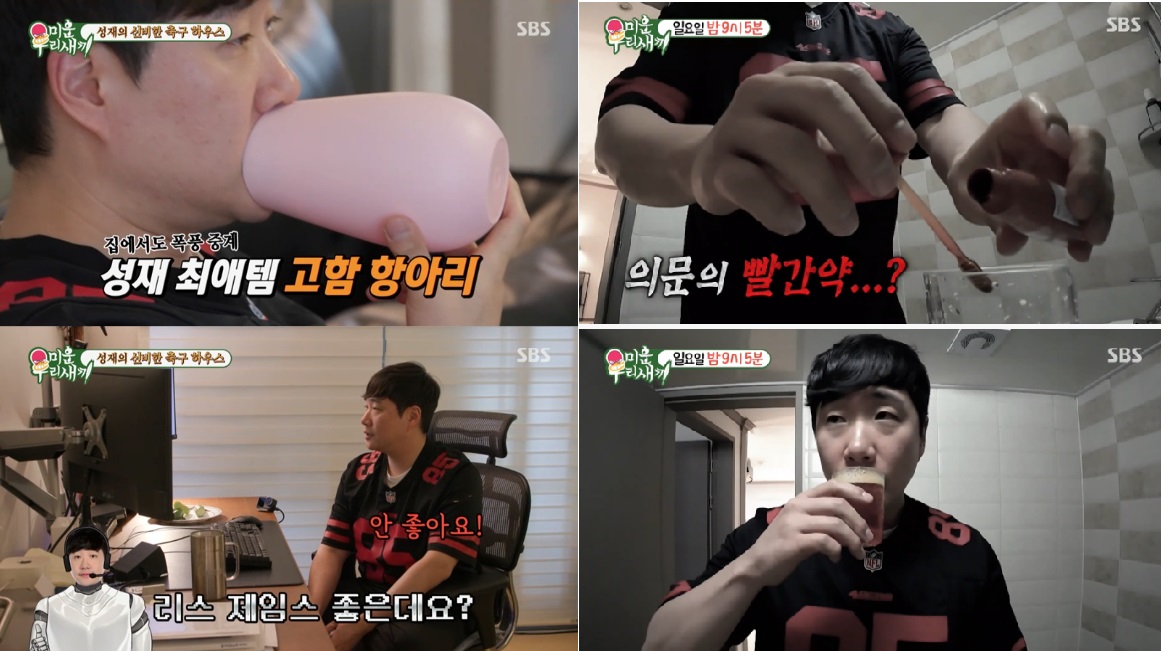 배성재는 눈을 뜨자마자 축구와 한 몸이 된 삶을 실천했는데요. 해외 축구 경기를 모니터링하며 혼자 중계를 이어가다 갑자기 빨간약을 가지고 가 가글을 하는데.. 이 기이한 모습에 다들 경악했습니다.. 뭐지? 하는 표정들 ㅎㅎ